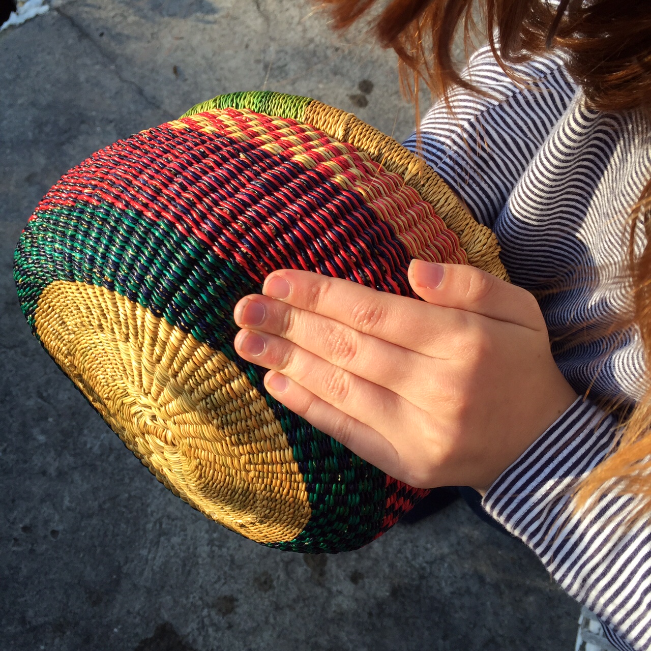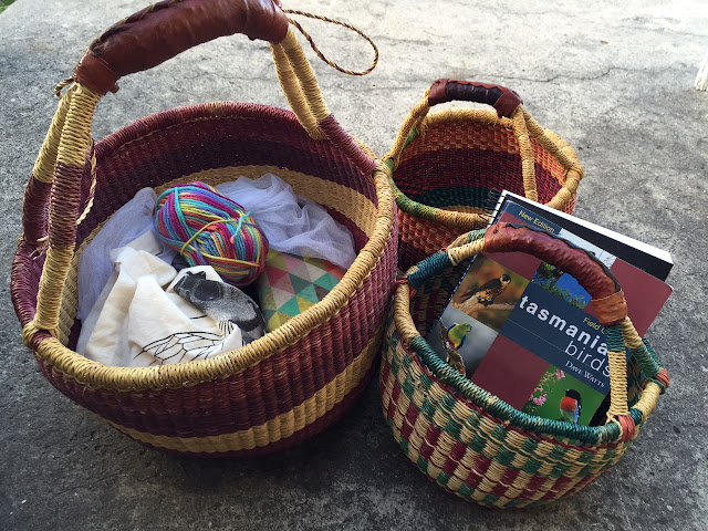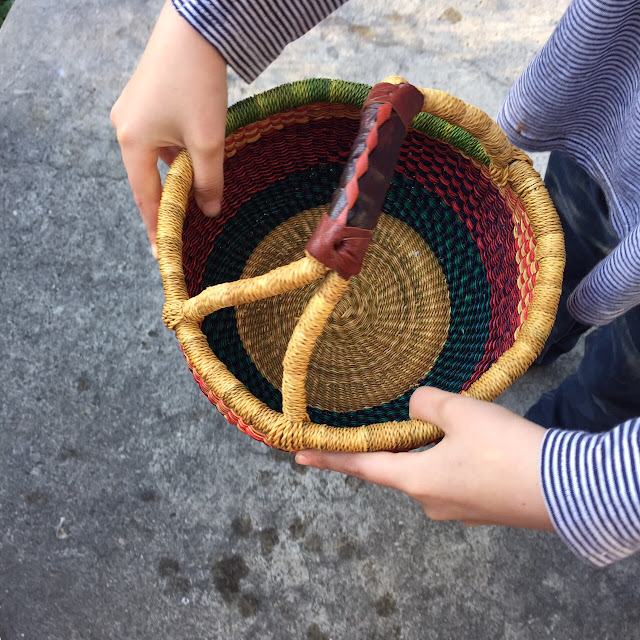 Possibly our most favourite things for going out and about are our bolga baskets. My mama basket travels everywhere with me. Part handbag, knitting basket, picnic basket, shopping basket, it's always on my arm when we leave the house. The owlets like theirs for carrying lunches, toys or art materials, or for collecting eggs or beach treasures. At home, they make pretty useful toy storage - we love that.