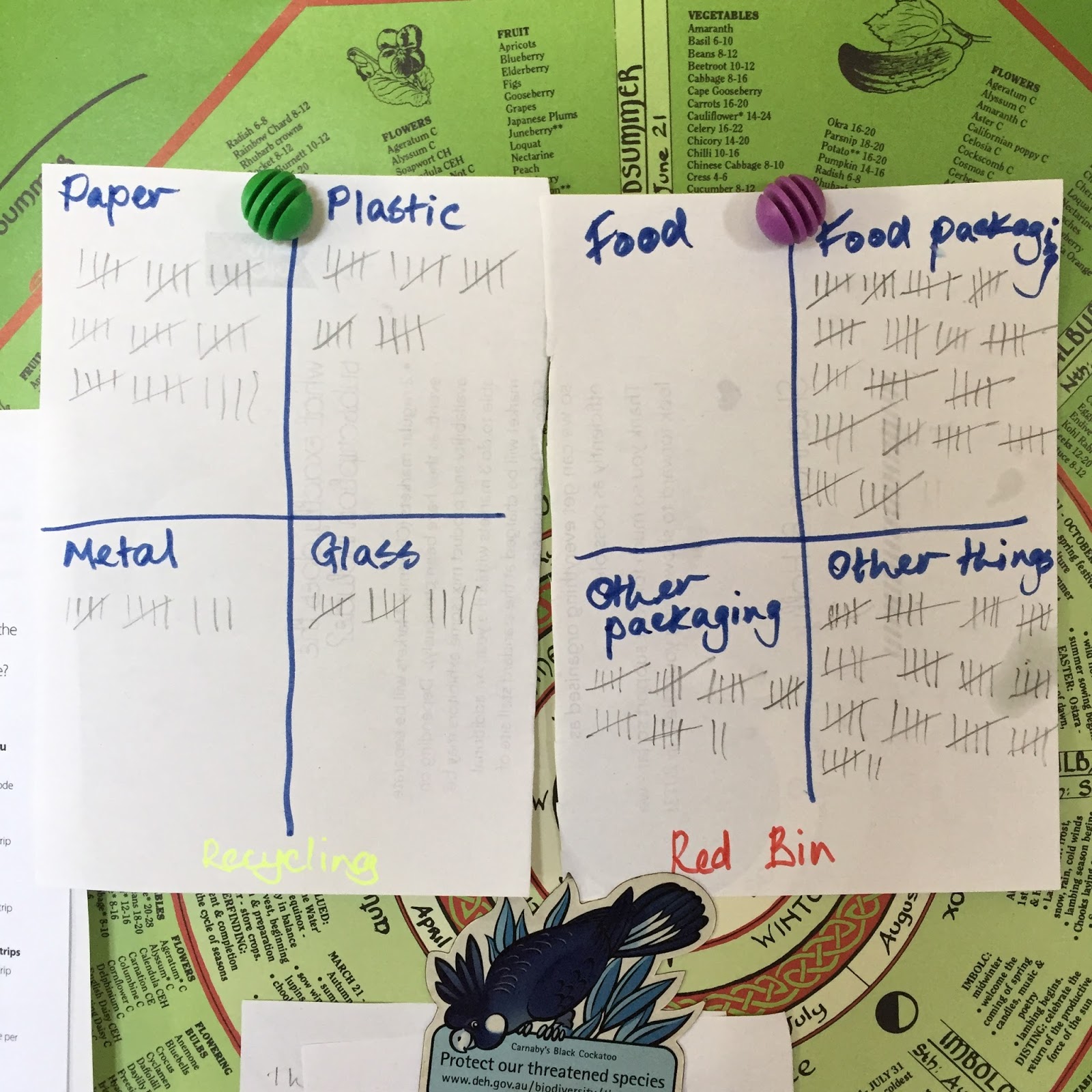 We timed our showers and were surprised at just how many minutes (and litres!) we lost while daydreaming. On average 8 minutes, but up to 18, which translates to 180 litres in our shower. That's a whole lot of water going down the drain. We kept a rough food diary, which reflected how hurried our days had been and how convenience played a part in our consumption. We tallied all the waste we produced, both rubbish and recycling, and although people have told us the amount seems small to them for a family of five, to us it is far too much for one planet to consume, week after week. Don't you agree?