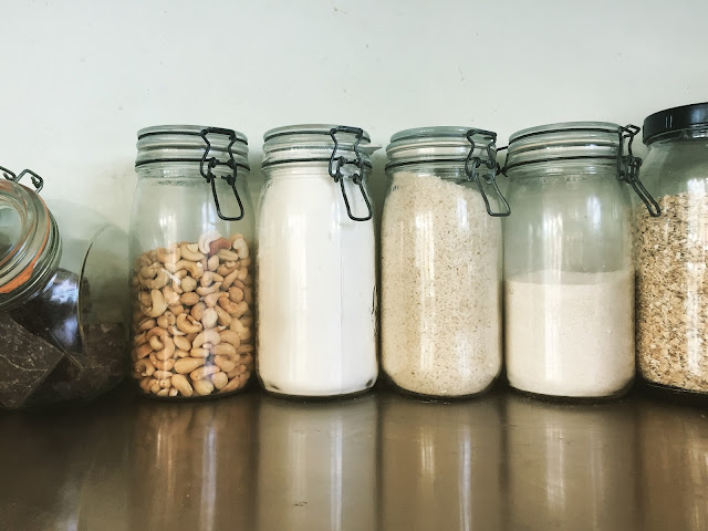 When we unpack the shopping, it's already in the jars we intend to keep it in for freshness, so we just pop it straight in the cupboard, fridge or on the bench. It saves time! Plus jars are kind of lovely food storage.