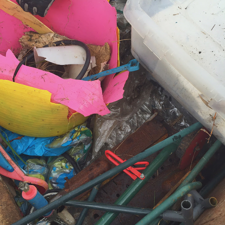 We ended up filling a small skip bin (2 cubic metres to hold 10 years of legacy waste is probably not too bad!). What did we put in it? Well some of the culprits included: old degraded weed mat, perishing and torn sheets of plastic that had covered mattresses when bought, torn kiddies inflatable wading pool, cheap laminated CD stacking shelves that we'd intended to donate but had been left in the rain and rotted, a child's car booster seat (used by all our kids, but well past its safe use condition), the rusted and twisted metal parts of a cheap plastic green house that had exploded in our back yard in a strong gust of wind, some rusted parts of an old gas barbecue (we kept the main bbq unit for a potting bench!)… mostly degraded plastics that held their desired form for only a short time, when you consider that tiny little toxic particles of that plastic will be existence on our earth for centuries.